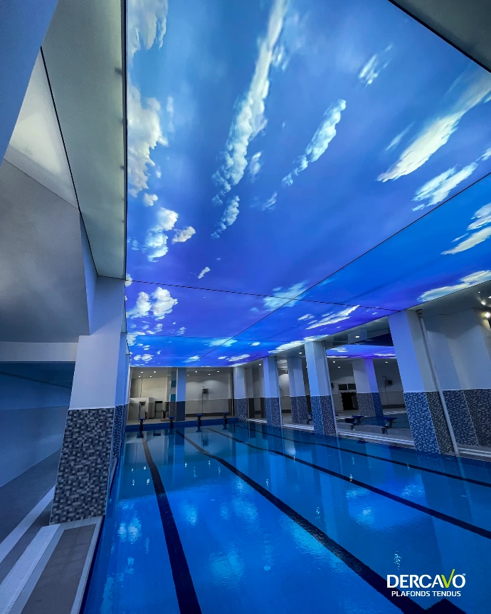 Un plafond tendu Dercavo est une solution décorative et technique sur mesure, composée d’une toile en PVC haute performance, fixée et tendue sur un profilé périphérique installé aux murs ou au plafond.